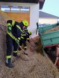 Zwei Landwirte waren mit Ladetätigkeiten von Hackschnitzeln beschäftigt, als es zu einem technischen Defekt am Anhänger kam. Der Kipper klappte plötzlich ab und klemmte dabei eine Person zwischen Kipper und Rahmen ein. Eine zweite Person wurde beim Öffnen der Bordwand von herabrutschendem Material verschüttet und zusätzlich unter einem Rad des Anhängers eingeklemmt.